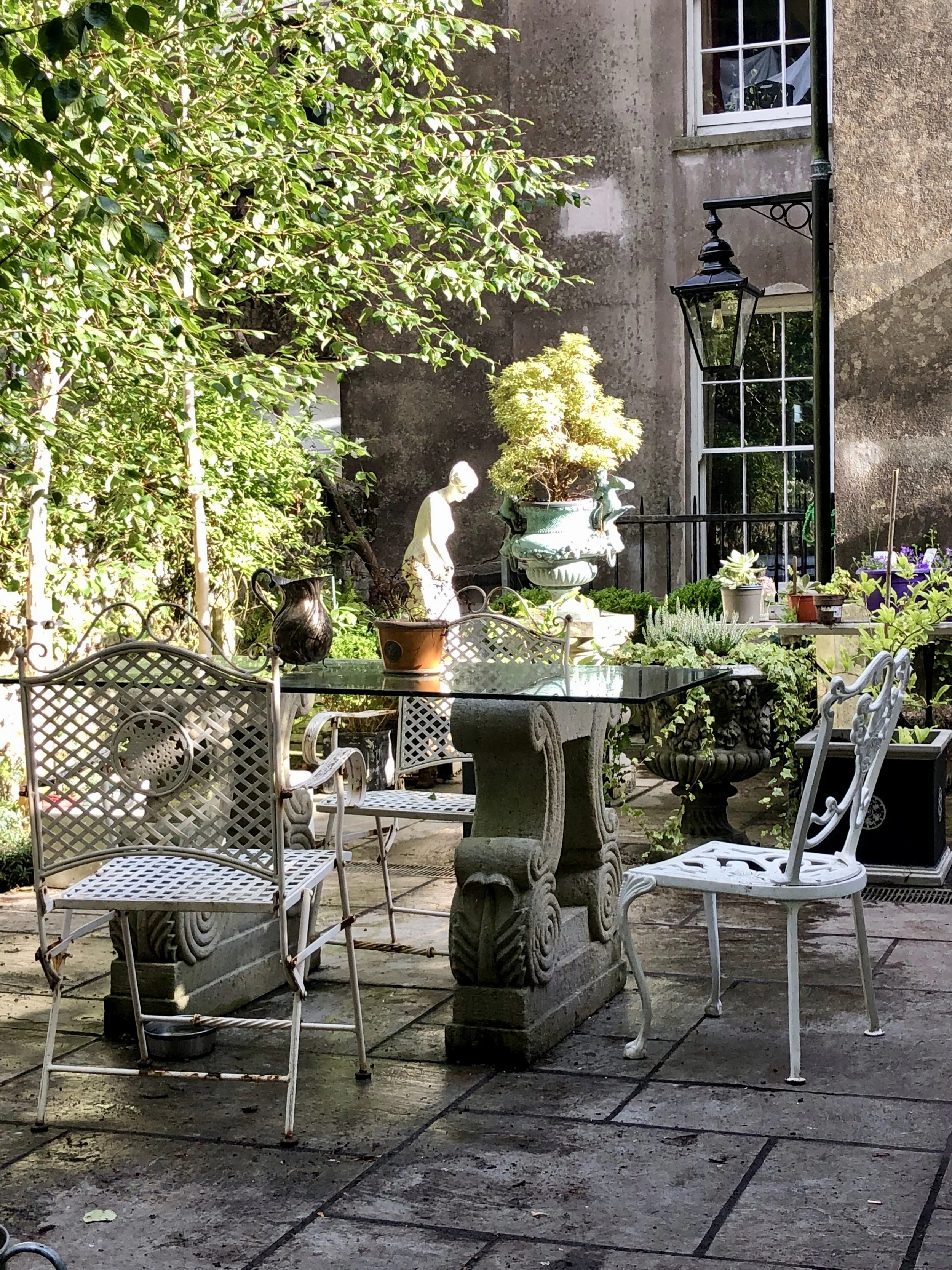 A beautiful classical Italian style garden hidden behind a Georgian house on the bustling Cobh waterfront.